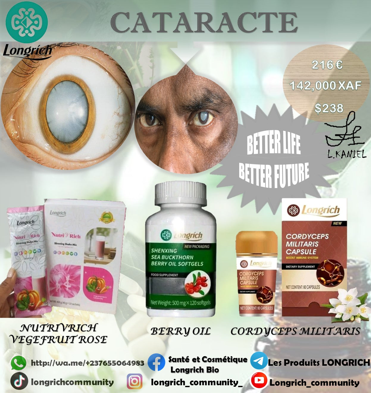 Prenez soin de votre vision avec le Traitement Longrich Contre la Cataracte. Commandez dès maintenant et offrez à vos yeux une solution naturelle pour retrouver une clarté visuelle et un bien-être quotidien ! 🌿