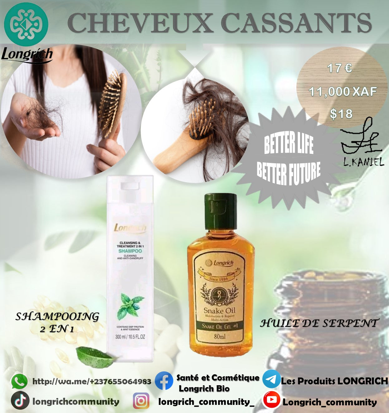 Transformez vos cheveux avec le Traitement Longrich Contre les Cheveux Cassants. Commandez dès aujourd’hui et retrouvez des cheveux forts, brillants et en pleine santé grâce à cette solution naturelle et innovante ! 🌿