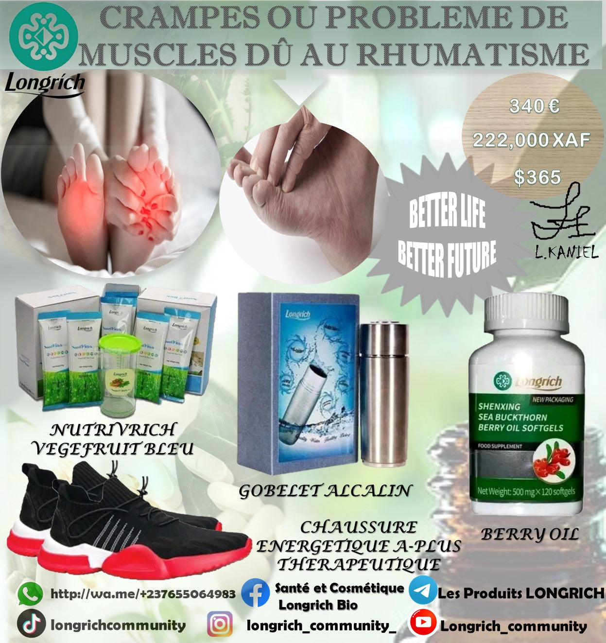 Redécouvrez la liberté de mouvement avec le Traitement Longrich Contre les Crampes et Problèmes Musculaires du Rhumatisme. Commandez dès aujourd’hui et transformez votre quotidien grâce à une solution naturelle et puissante ! 🌿