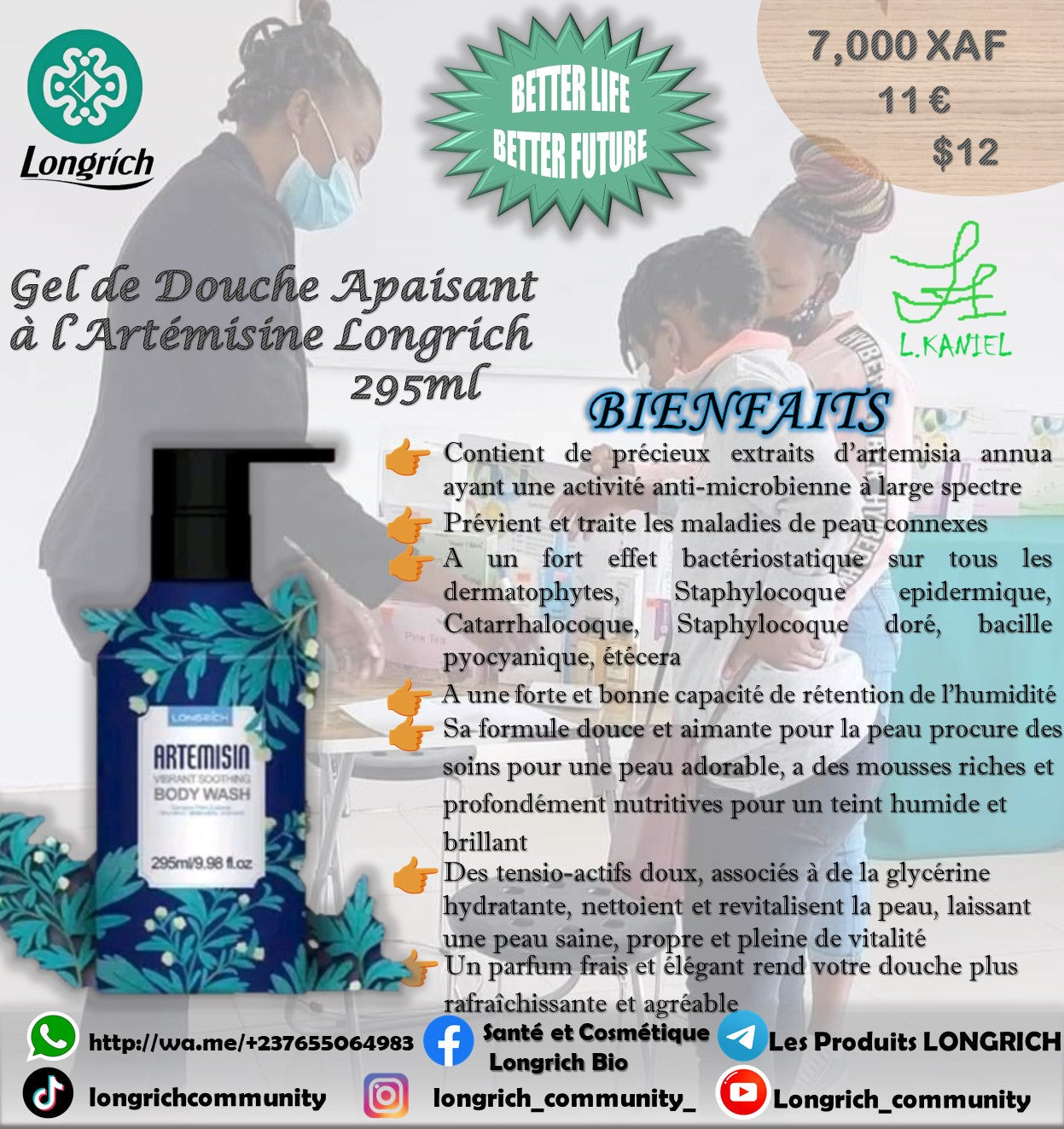 Sublimez votre routine avec le Traitement Longrich à Base d’Artemisine pour l’Entretien Corporel. Commandez dès aujourd’hui et découvrez une solution naturelle et innovante pour une peau saine, douce et éclatante ! 🌿