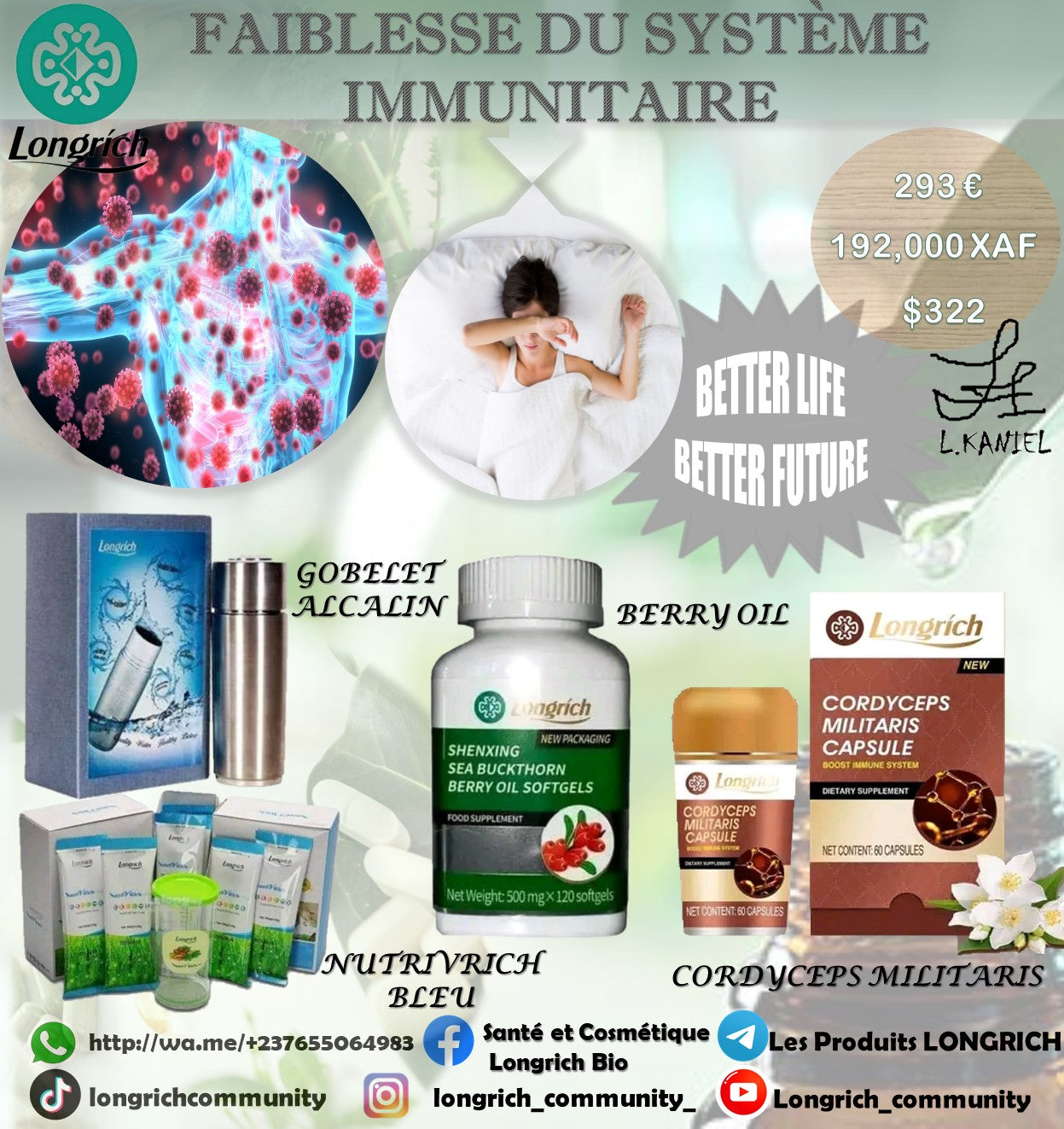 Reprenez le contrôle de votre santé avec le Traitement Longrich Contre la Faiblesse du Système Immunitaire. Commandez dès aujourd’hui et découvrez une solution naturelle et efficace pour revitaliser votre organisme et retrouver votre vitalité ! 🌿