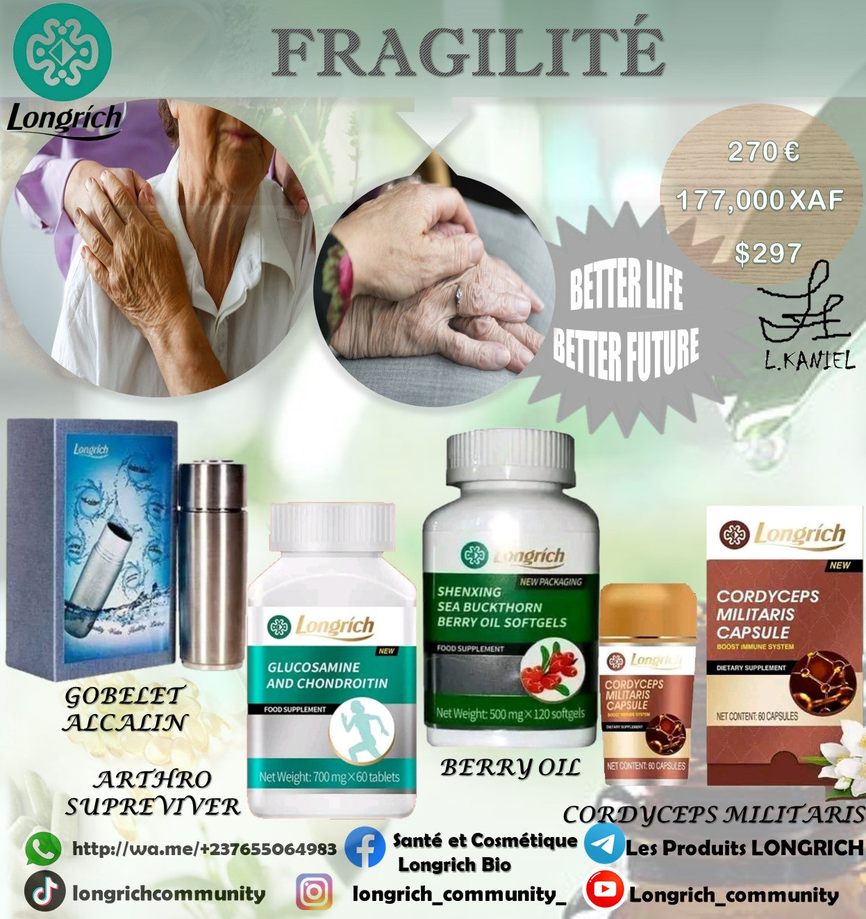 Prenez soin de votre santé avec le Traitement Longrich Contre la Fragilité. Commandez dès aujourd’hui et découvrez une solution naturelle pour renforcer votre corps et améliorer votre qualité de vie au quotidien ! 🌿