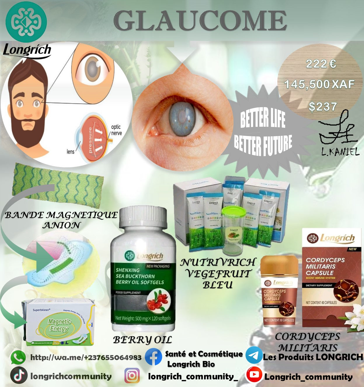 Prenez soin de votre vision avec le Traitement Longrich Contre le Glaucome. Commandez dès aujourd’hui et découvrez une solution naturelle pour préserver votre santé oculaire et améliorer votre qualité de vie ! 🌿