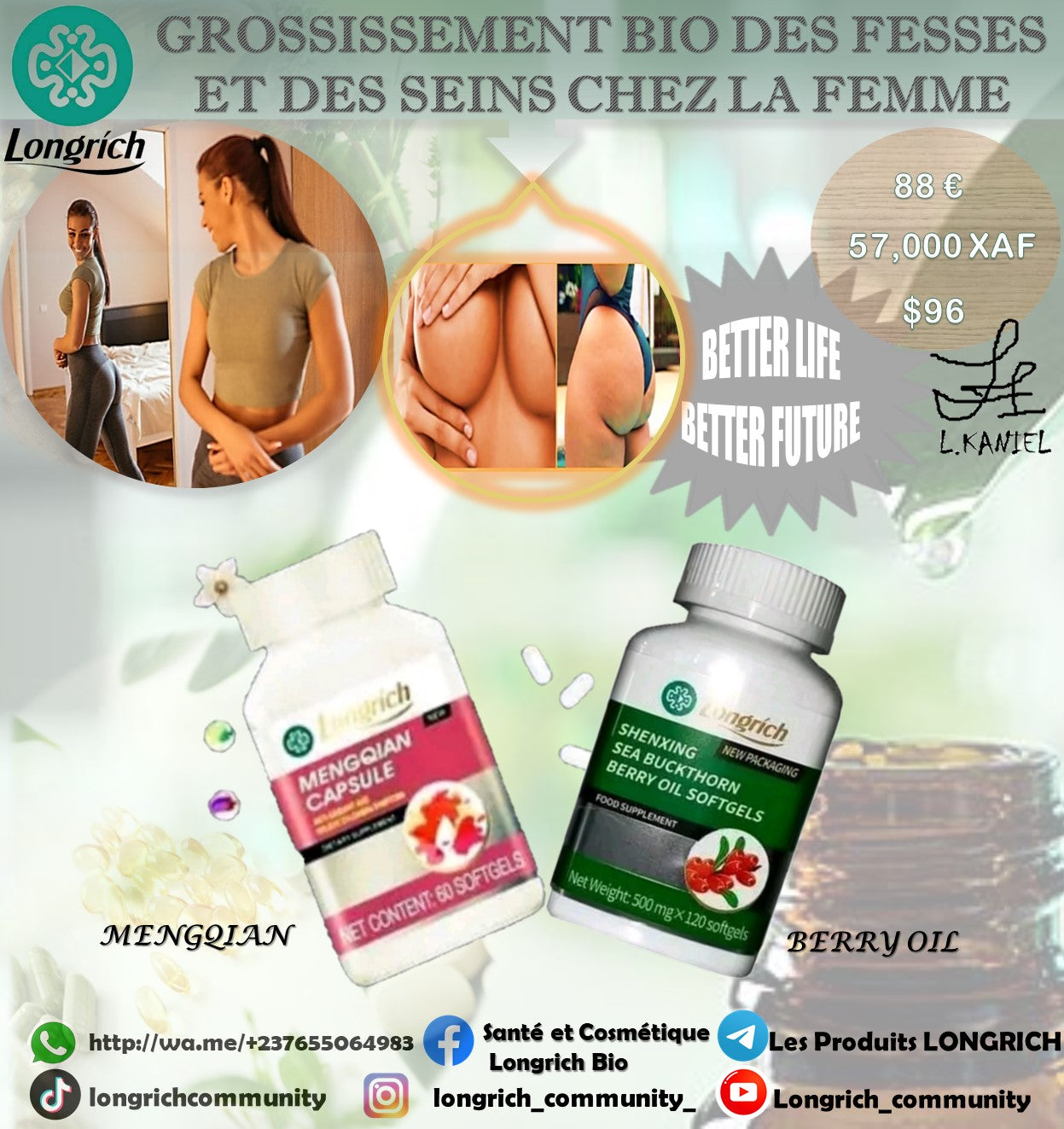 Sublimez vos courbes avec le Traitement Longrich Pour le Grossissement Bio des Fesses et des Seins. Commandez dès aujourd’hui et découvrez une solution naturelle pour révéler votre féminité et prendre confiance en vous au quotidien ! 🌿