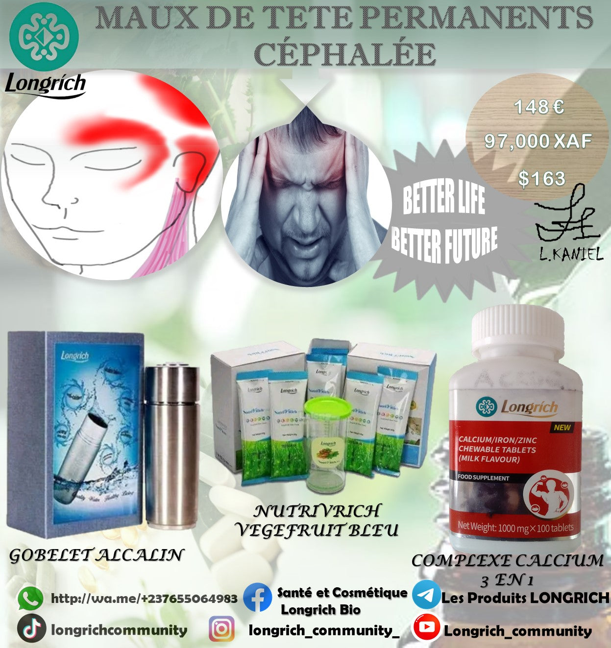 Prenez soin de votre confort avec le Traitement Longrich Contre les Maux de Tête Permanents. Commandez dès aujourd’hui et découvrez une solution naturelle pour apaiser vos douleurs et restaurer votre bien-être au quotidien ! 🌿