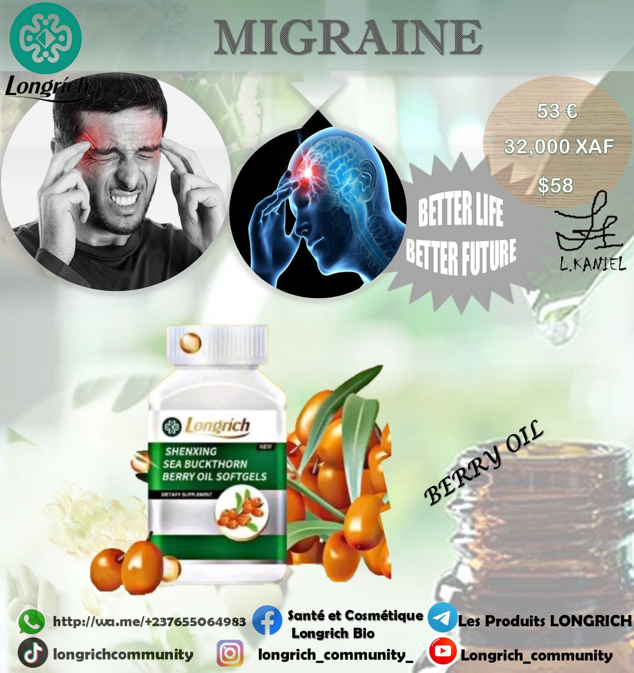 Soulagez vos migraines et retrouvez une vie sereine grâce au Traitement Longrich Contre la Migraine. Ce traitement naturel, à base de Berry Oil, agit en profondeur pour réduire les douleurs, apaiser les tensions et améliorer votre énergie globale. Une approche douce et efficace pour un soulagement durable.