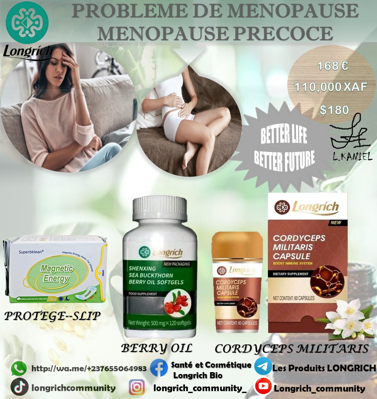 Prenez soin de vous avec le Traitement Longrich Contre la Ménopause et la Ménopause Précoce. Commandez dès aujourd’hui et découvrez une solution naturelle pour restaurer votre énergie et votre vitalité au quotidien ! 🌿