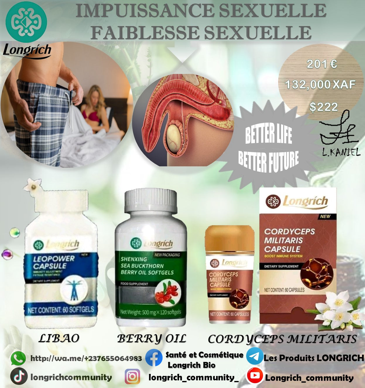 Prenez soin de votre vitalité avec le Traitement Longrich Contre l’Impuissance Sexuelle. Commandez dès aujourd’hui et découvrez une solution naturelle pour restaurer votre énergie et revitaliser votre confiance au quotidien ! 🌿