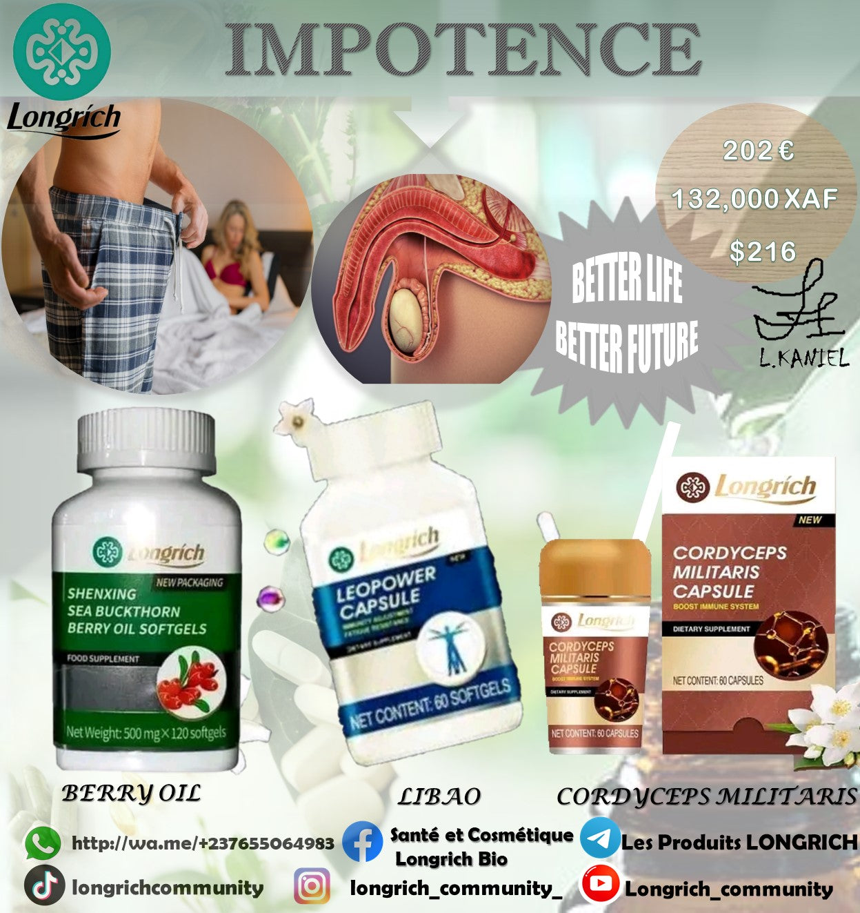 Prenez soin de votre vitalité avec le Traitement Longrich Contre l’Impotence. Commandez dès aujourd’hui et découvrez une solution naturelle pour restaurer votre énergie et revitaliser votre confiance au quotidien ! 🌿