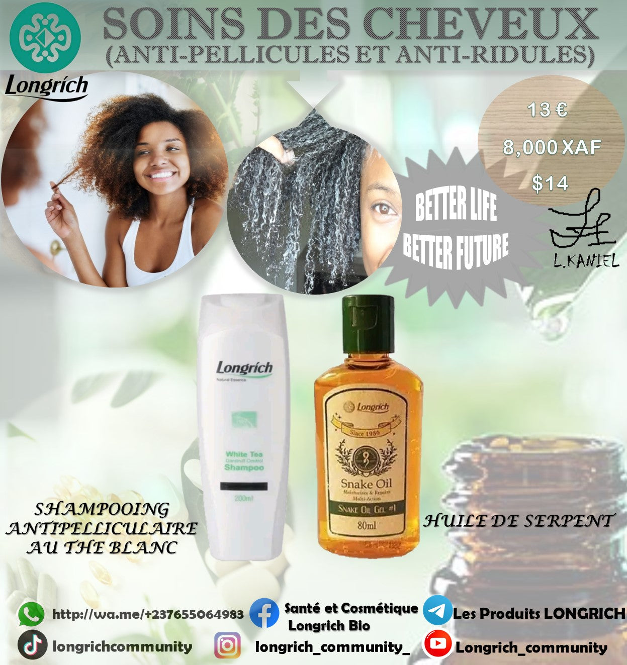 Prenez soin de vos cheveux avec la Gamme Longrich Pour les Soins des Cheveux. Commandez dès aujourd’hui et découvrez une solution naturelle pour une chevelure saine, sans pellicules et pleine de vie au quotidien ! 🌿